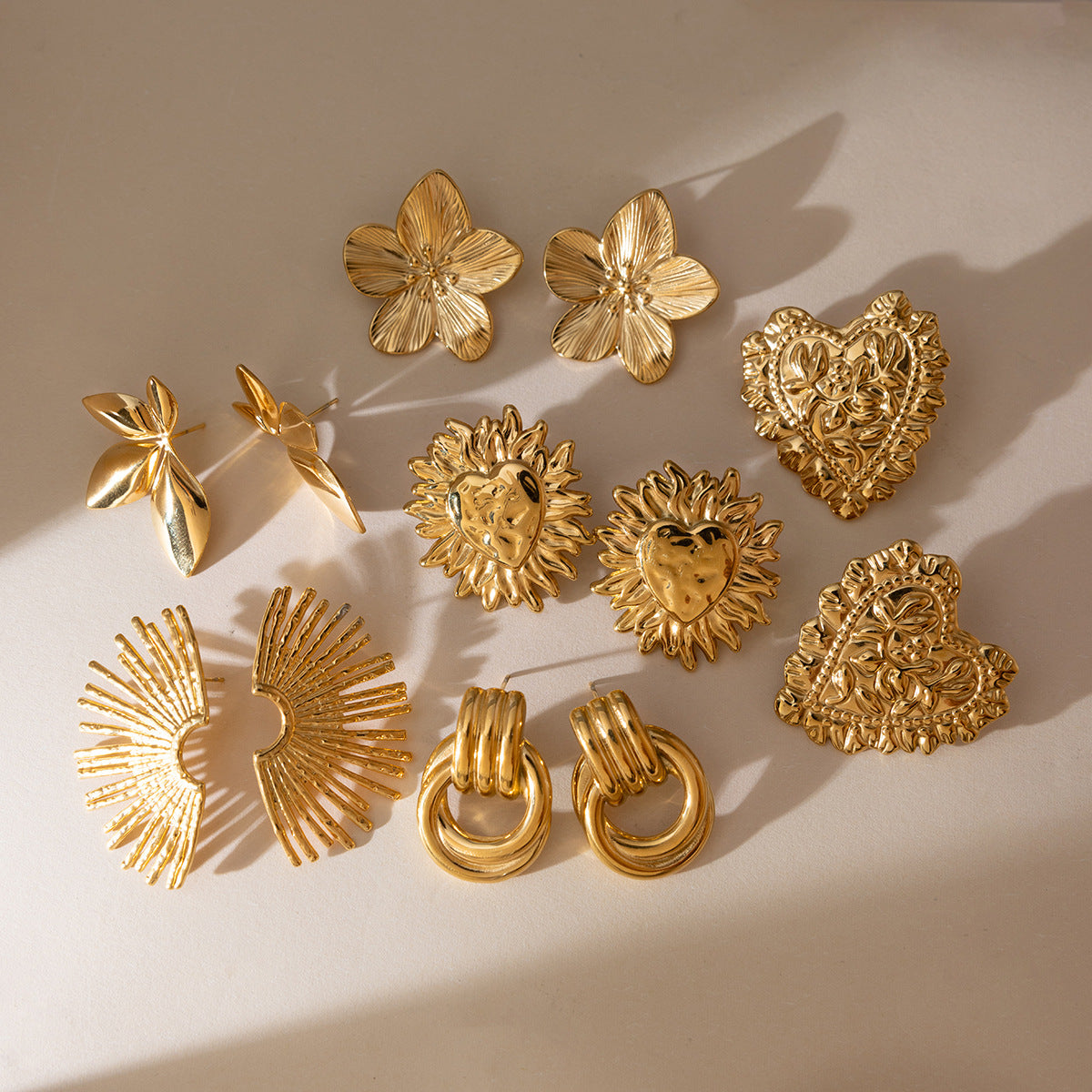 18K Gold Plated Stainless Steel Earrings | Heart, Flower & Sun Minimalist Jewelry for Women